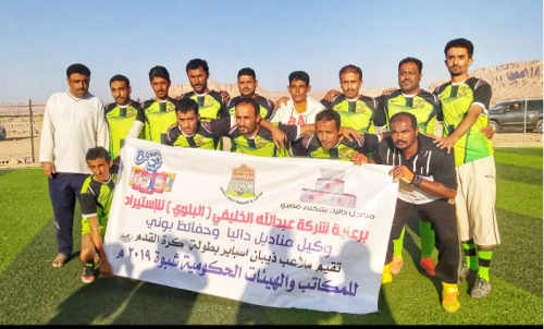 الأستقلال يتوج ببطولة الشهيدين الخطاف والعظمي بمديرية رضوم بحضور الأمين العام للمجلس المحلي بمديرية رضوم هادي سعيد الخرماء ورئيس نادي قناء الرياضي محمد يسلم قس...