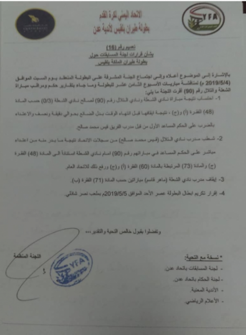 عاجل... بقرار من اللجنة المنظمة الشعلة بطلا لبطولة طيران بلقيس عقدت اللجنة المنظمة لبطولة طيران بلقيس عصر اليوم السبت ااجتماعاً طارئاً برأسة الاستاذ عبدالجبار سلام...
