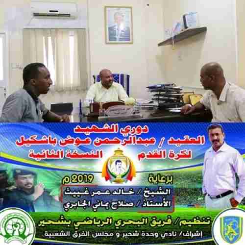 مسجدي يطلع على نشاط نادي وحدة شحير ويتلقى دعوة لحضور نهائي بطولة الشهيد عبدالرحمن باشكيل أكد المدير العام لمكتب وزارة الشباب والرياضة بساحل حضرموت الكابتن حسن صالح مسجدي أن ذكر...