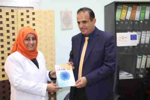 كتاب كوفيد 19 بين يدي وزير الصحة والسكان الدكتور قاسم بحيبح سلمت الدكتوره رجاء أحمد علي مسعد بروفيسور وأستاذ التخدير و العناية المركزة في كلية ا...
