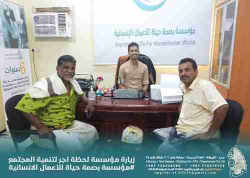 *زيارة مؤسسة لحظة اجر لمؤسسة بصمة حياة للاعمال الإنسانية بالعاصمة عدن زار مؤسسة لحظة اجر صباح يوم السبت الموافق ٢٠٢٢/٣/١٩م مؤسسة بصمة حياة للاعمال الإنسان...