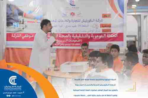 شركة الكورنيش للتجارة والخدمات المحدودة تقيم الحملة التوعوية والتثقيفية بالصحة العامة لعدد من موظفيها أقامت شركة الكورنيش للتجارة والخدمات المحدودة، بقاعة الشركة الحملة التوعوية والتثقيفية بالصحة العامة...