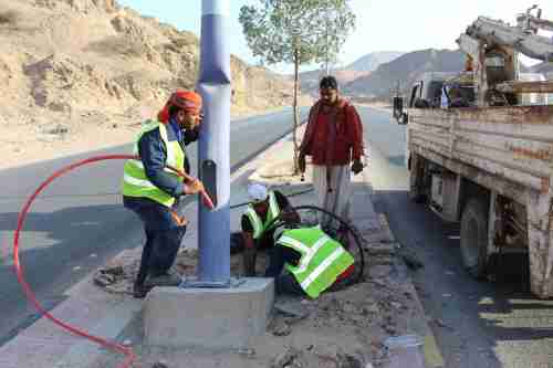 بدعم من السلطة المحلية البدء في مشروع إعادة تأهيل إنارة شارع المعاوص - الغويزي بالمكلا بدأ عمال الإنارة بمدينة المكلا صباح اليوم بمشروع إعادة تأهيل أعمدة الإنارة بشارع المعاوص – الغ...