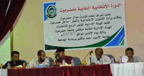 انعقاد المؤتمر العام الرابع لانتخابات الهيئة الادارية لنقابة موظفي جامعة حضرموت عقد بقاعة الأديب علي أحمد باكثير برئاسة جامعة حضرموت المؤتمر الرابع لانتخابات الهيئة الادارية لنقا...