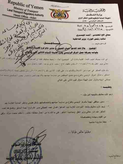 في سابقة هي الأولى بتاريخ عدن وزير الداخلية يأمر باعتقال مدير عام هيئة النقل البري قالت مصادر عمالية في هيئة تنظيم النقل البري بالعاصمة عدن أن معالي نائب رئيس الوزراء ووزير الداخلية أ...