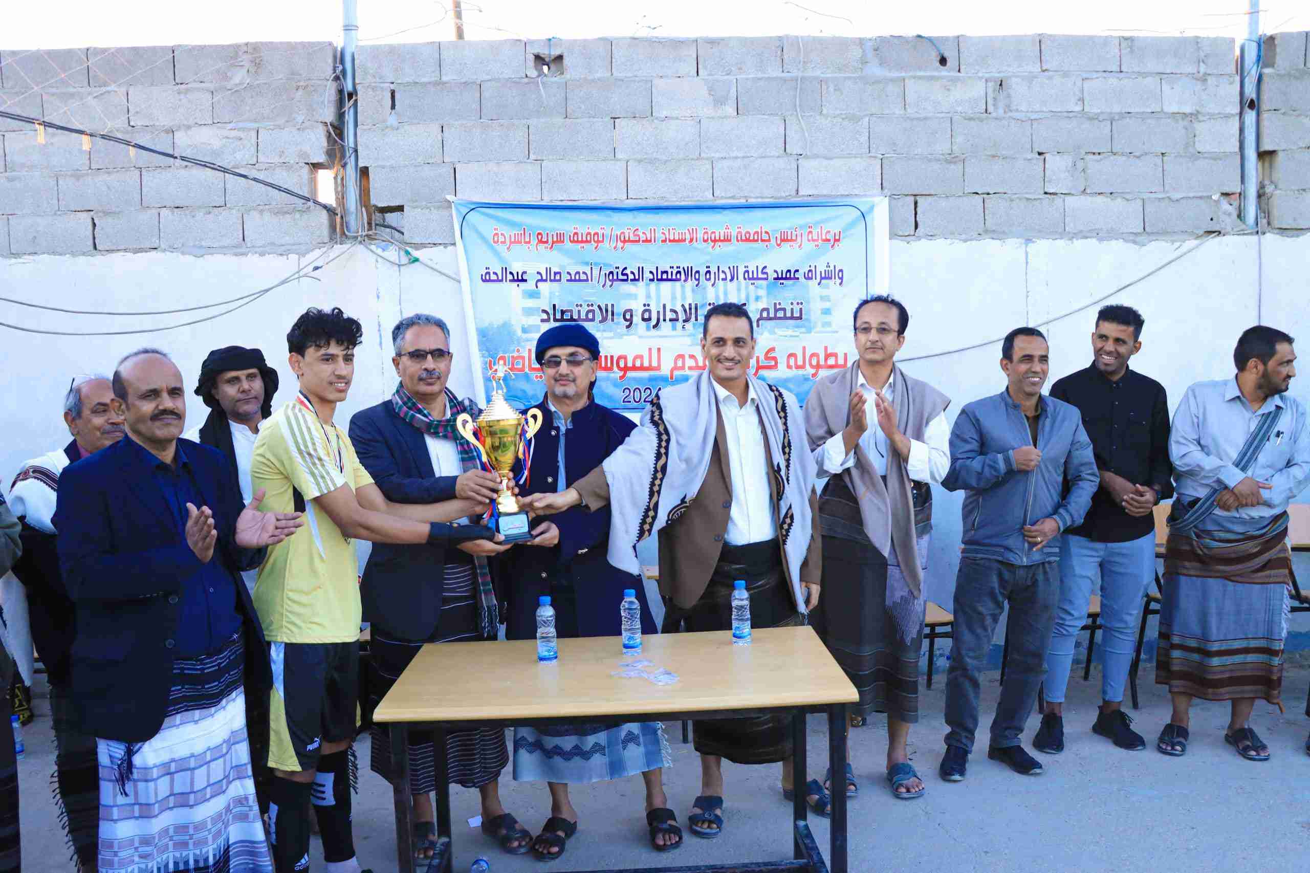 رئيس جامعة شبوة يحضر المبارة النهائية لدوري كلية الادارة والاقتصاد . اختتم مساء اليوم دوري كلية الادارة والاقتصاد بمباراة جمعت بين فريقي المحاسبة2 والاقتصاد حيث بدأت الم...