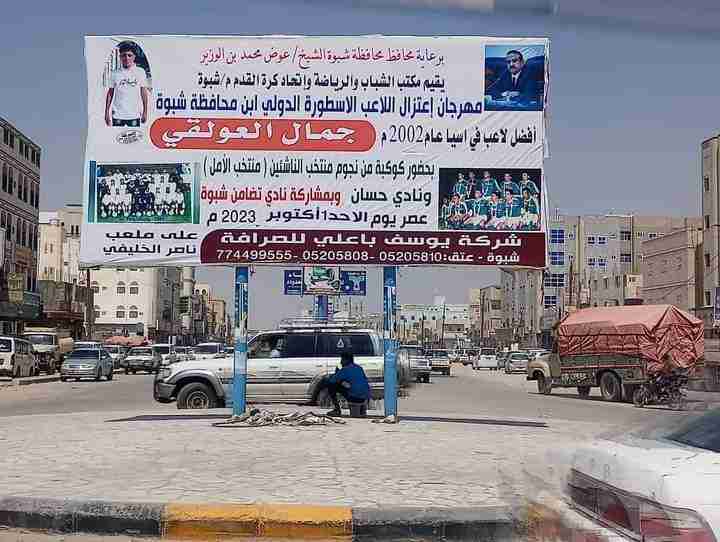لافتات وبنرات وصور النجم الدولي الكابتن جمال العولقي تزين شوارع العاصمة عتق زينت لافتات وبنرات وصور النجم الدولي السابق الكابتن جمال ناصر العولقي ، الشوارع الرئيسية والحيوية بم...