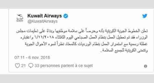 تعطيل الدراسة كليا في الكويت بسبب سوء الأحوال الجوية شركة الخطوط الجوية الكويتية تعلق العمل في منظومتها وجاء في تغريدة لها على تويتر " حرصا على سلامة موظ...