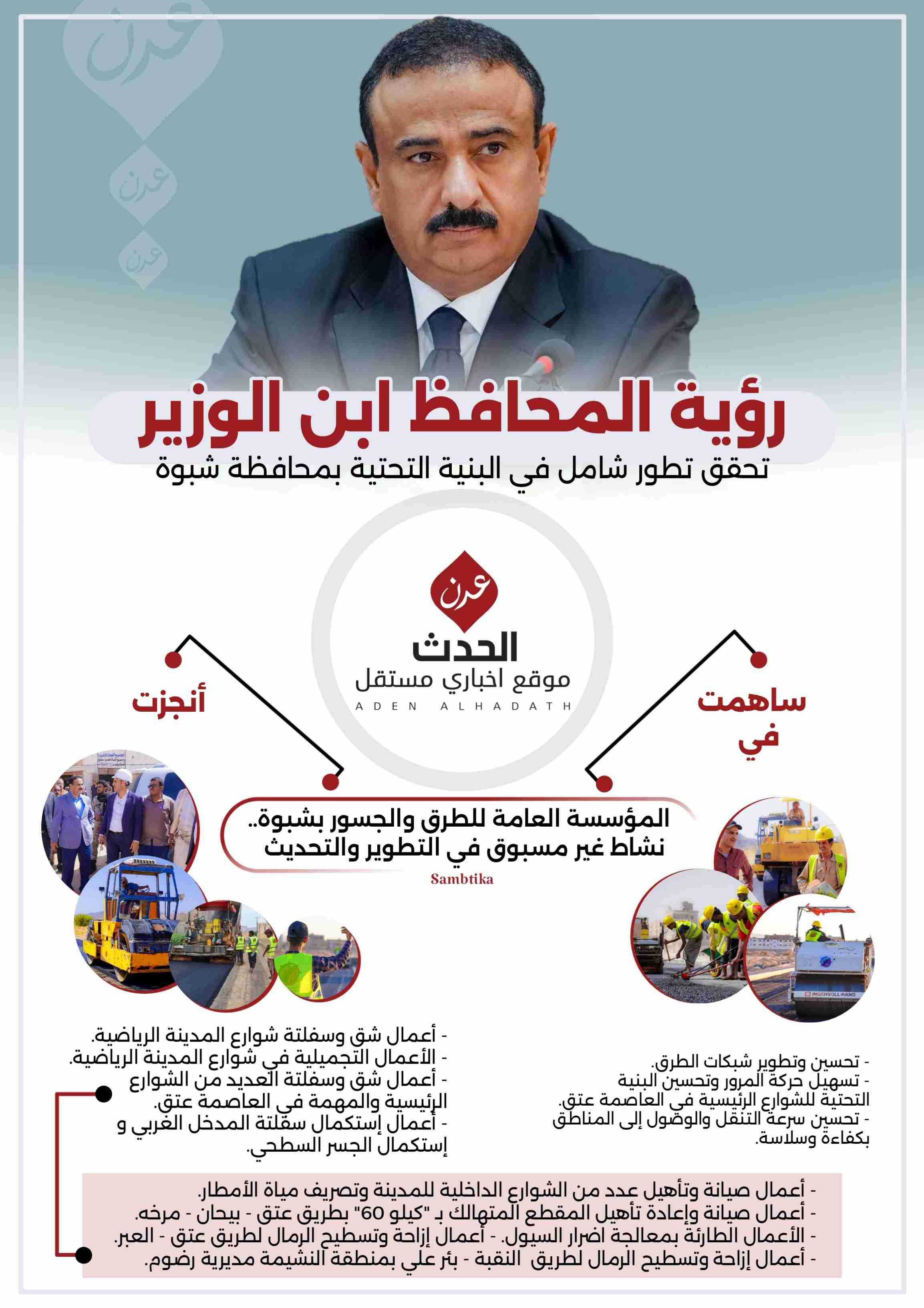 المؤسسة العامة للطرق والجسور بشبوة.. نشاط غير مسبوق في التطوير والتحديث في خطوة ملفتة للنظر، ساهمت المؤسسة العامة للطرق والجسور بمحافظة شبوة في تحسين وتطوير شبكات الطرق في...