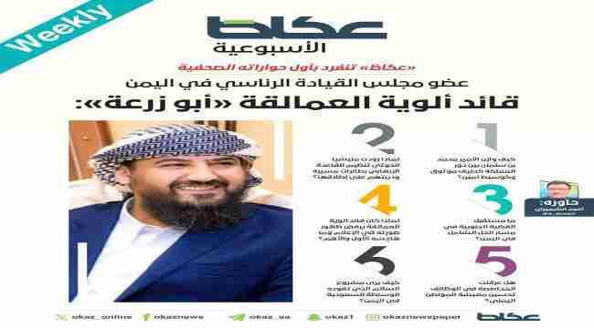 قائد ألوية العمالقة لـ «عكاظ»: نواجه الخطر الحوثي جسداً واحداً في الجنوب والشمال اكد نائب رئيس المجلس الانتقالي الجنوبي، عضو مجلس القيادة الرئاسي في اليمن قائد ألوية العمالقة الجنوب...