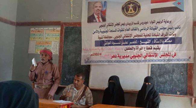انتقالي دهر يقيم ندوة عن التنمية المستدامة للناشطات المجتمعيات في المديرية نظم قسم المرأة والطفل بالهيئة التنفيذية للقيادة المحلية للمجلس الانتقالي الجنوبي في مديرية دهر بمحاف...
