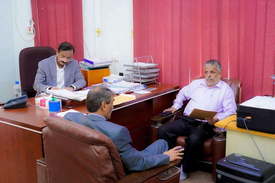 محافظ شبوة بن الوزير يناقش مع مدير عام المصائد السمكية مجمل أوضاع القطاع السمكي التقى - صباح اليوم- محافظ محافظة شبوة، رئيس المجلس المحلي عوض محمد بن الوزير، مع مدير عام المصائد ال...