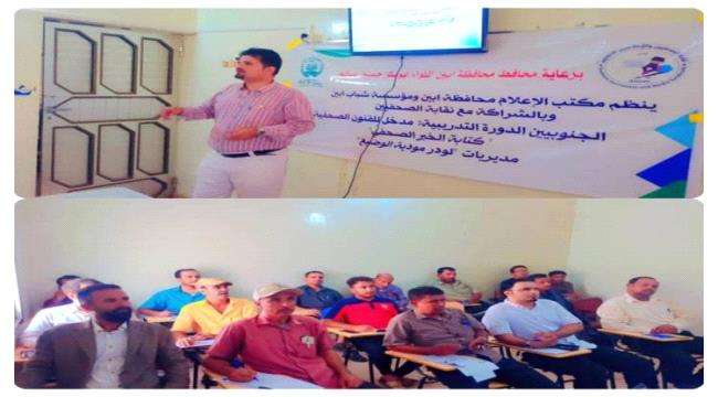 إعلام ابين ونقابة الصحفيين الجنوبيين ينظمان دورة تدريبية حول " فن كتابة الخبر الصحفي" شهدت قاعة مؤسسة نور الإبداع بمديرية مودية محافظة أبين إنعقاد الدورة التدريبية مدخل للفنون الصحفية "...