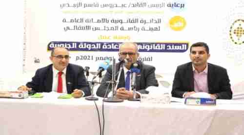 ورشة للدائرة القانونية حول "السند القانوني والشرعي لاستعادة الدولة الجنوبية" نظمت الدائرة القانونية في الأمانة العامة لهيئة رئاسة المجلس الانتقالي الجنوبي اليوم...