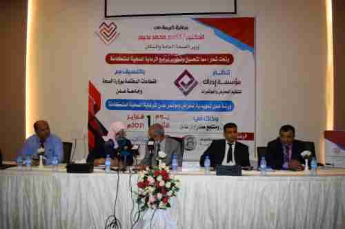 نائب وزير الصحة يفتتح ورشة التهيئة لمؤتمر عدن للرعاية الصحية . نظمت مؤسسة إدراك لتنظيم المؤتمرات والمعارض بالتنسيق مع جامعة عدن والجامعات الاهلية ، وقطاعات وزارة ا...
