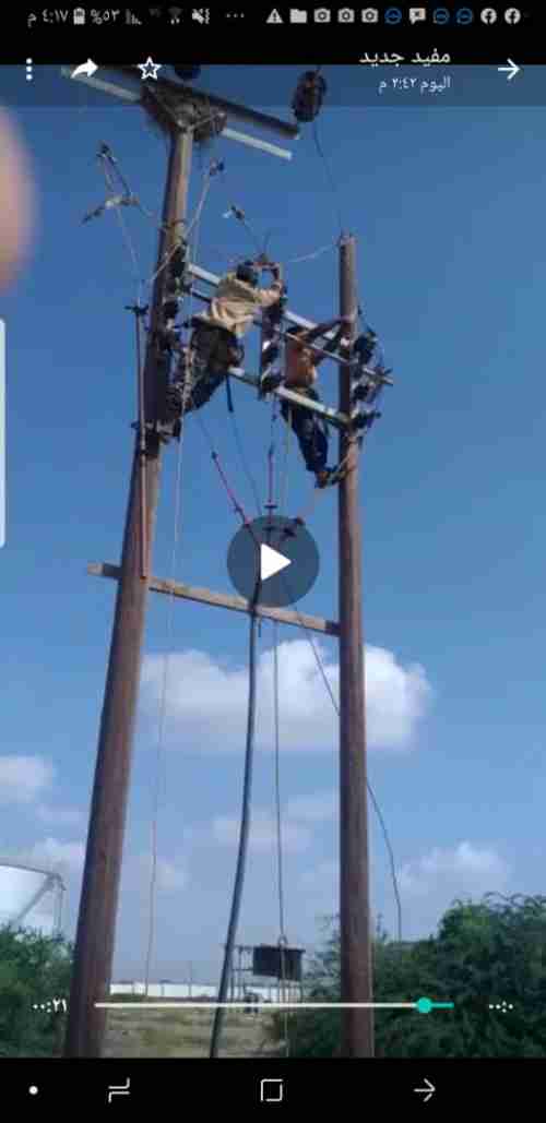بأشراف مدير كهرباء عدن و مدير المنطقة الثالثة تامين التيار الكهربائي لحقل بئر احمد بتوجيهات محافظ محافظه عدن الاستاذ احمد حامد لملس و بأشراف مباشر لمدير كهرباء عدن الاستاذ مجيب الشعبي...