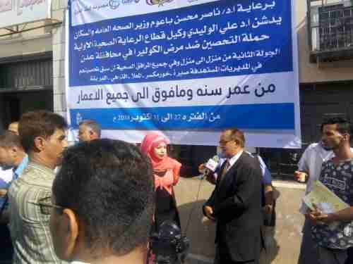 مدير صيرة يدشن حملة التوعية والتحصين ضد مرض الكوليرا دشن مدير عام مديرية صيرة بعدن خالد سيدو، صباح اليوم حملة التوعية والتحصين ضد مرض الكوليرا "من منزل إ...
