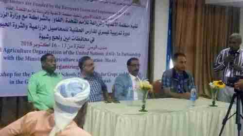 أفتتاح دورة تدريبية لمسيري المدارس الحقلية في محافظات لحج وابين وشبوة بحضور وكلاء وزارة الزراعة والري م امين باقادر و م علي الجنيد وعبدالملك ناجي ومنسق الفاو د اشرف الحوا...