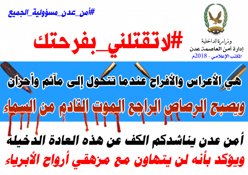 عريس رابع في عدن يبات ليلة دخلته في السجن اقتادت شرطة مدينة خور مكسر مساء أمس الإثنين عريساً جديدا وأودعته السجن بسبب إطلاق مشاركين في حفل زفا...