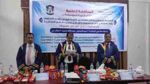 *الدكتوراه للباحث عبدالجليل المقرعي من كلية العلوم الاجتماعية بجامعة عدن* نال الباحث عبدالجليل عبدالله حميد المقرعي، اليوم السبت، درجة الدكتوراه، من قسم إدارة الأعمال ب...