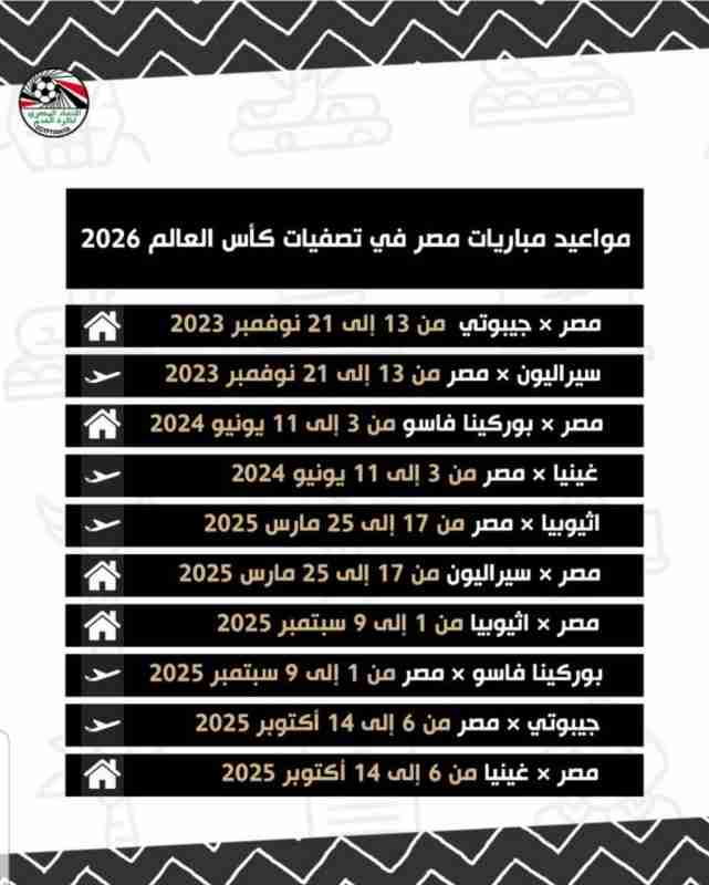 مواعيد مباريات منتخب مصر في التصفيات المؤهلة لمونديال 2026