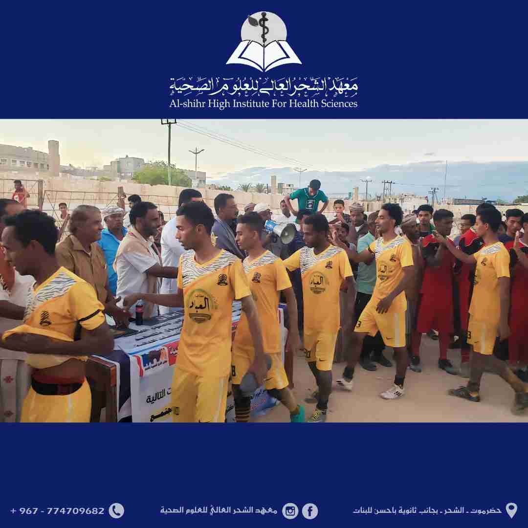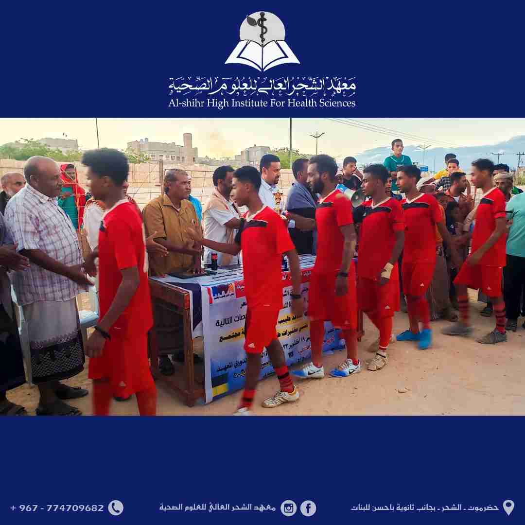 ضمن الأنشطة التي يرعاها معهد الشحر العالي للعلوم الصحية.. ختام المباراة النهائية لدوري كرة القدم على كأس البطولة