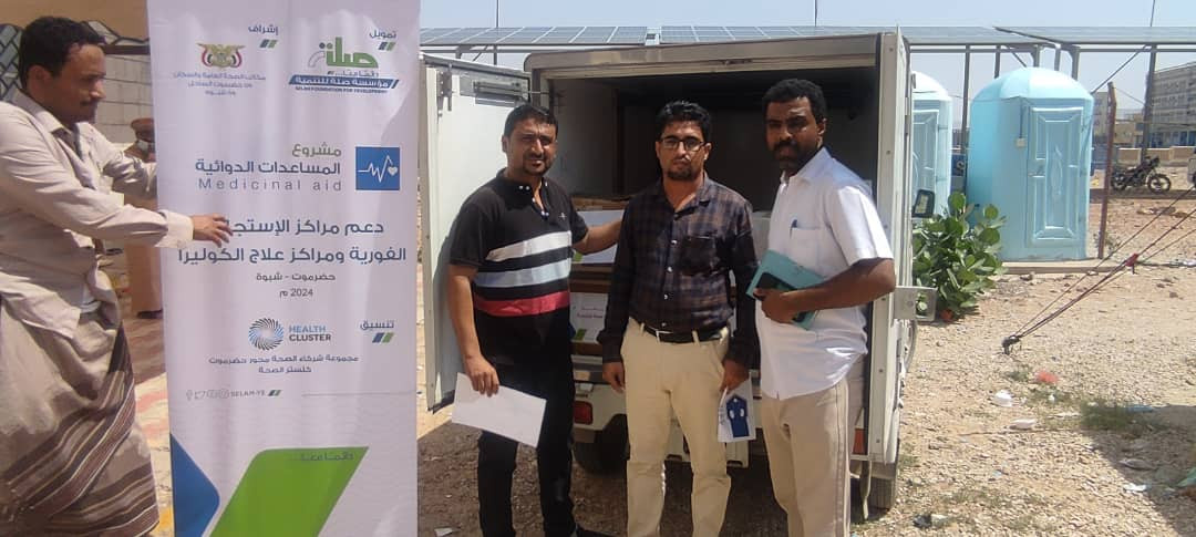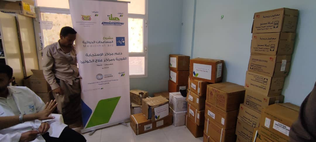 تسليم شحنة أدوية ومستلزمات طبية لمركز علاج الكوليرا بشبوة بتمويل من مؤسسة صلة للتنمية