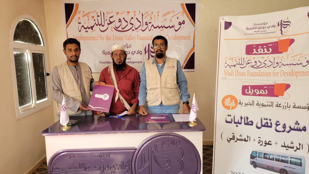 مؤسسة وادي دوعن للتنمية تساهم في نقل الطالبات إلى مجمعي باجعفر والسيدة خديجة