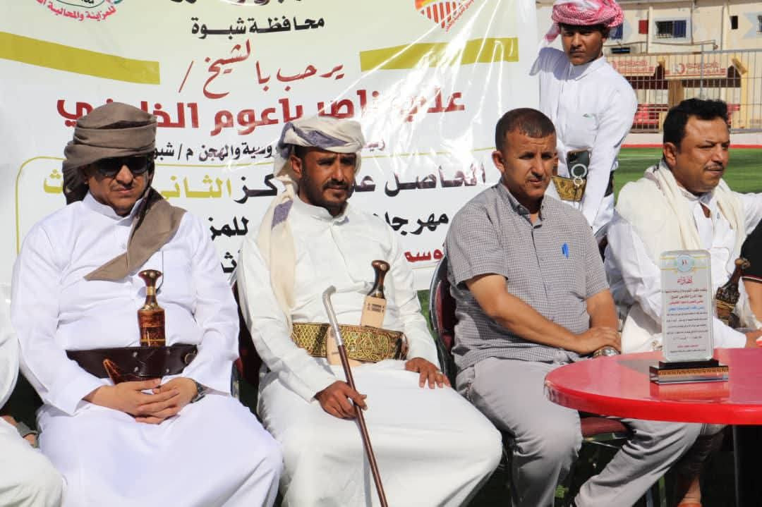 شبوة.. استقبال رسمي وشعبي للشيخ/ علي باعوم الخليفي الفائز بالمركزين الثاني والثالث في مهرجان اثوب للمزاينة والمحالبة بالمهرة .