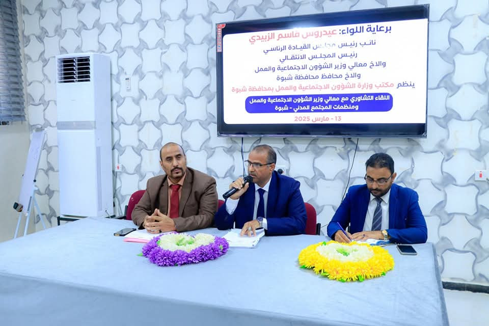 وزير الشؤون الاجتماعية والعمل يعقد لقاء بمنظمات المجتمع المدني في محافظة شبوة.