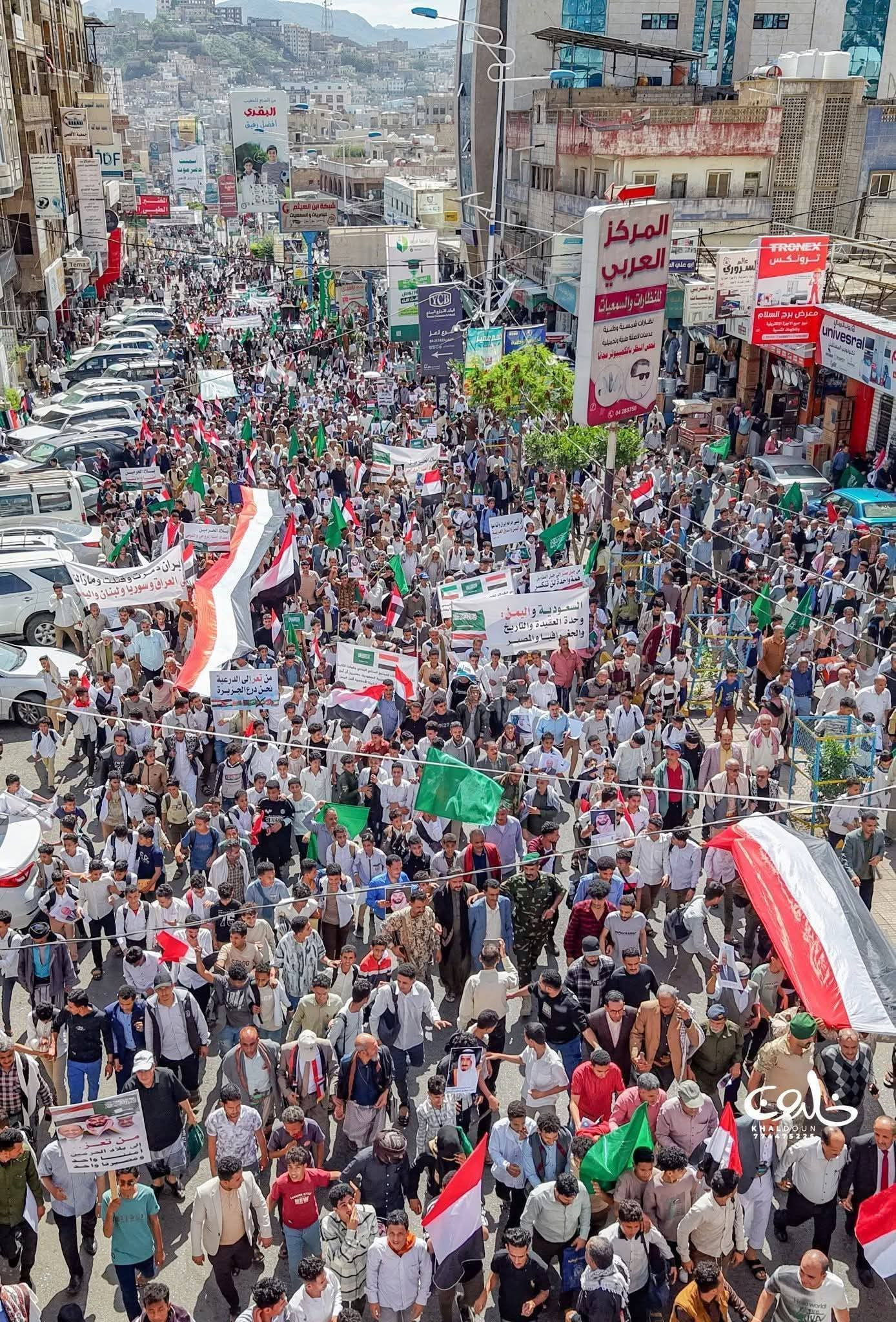 تعز تنتفض تضامنًا مع السعودية والخليج وتدين العدوان الإيراني