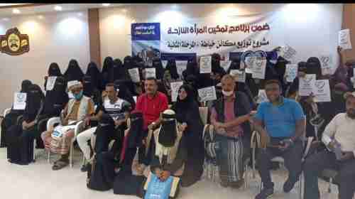 مؤسسة الشوكاني توزع مكائن خياطة ل 50 نازحة من مخيم الرباط بلحج