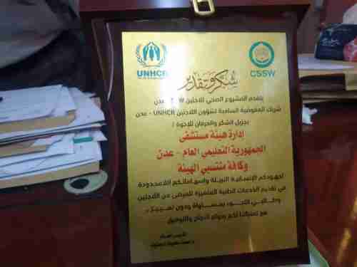 المشروع الصحي للاجئين يكرّم إدراة مستشفى الجمهورية بعدن وكافة منتسبيها*