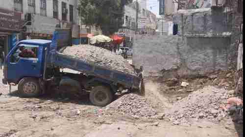 مدير الشيخ عثمان يتفقذ أعمال الردم والكبس لعمل الصبيات في موقعي القمامة بشارع الذهب