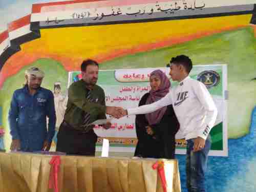 بحضور الاستاذة اشتياق محمد سعد رئيس دائرة المرأة والطفل بالأمانة العامة للمجلس الانتقالي الجنوبي والأستاذ انور محضار راجح مدير إدارة التربية والتعليم في مديرية الشيخ عثمان والاستاذ حسين يافعي رئيس قسم الانشطة المدرسية بالمديرية