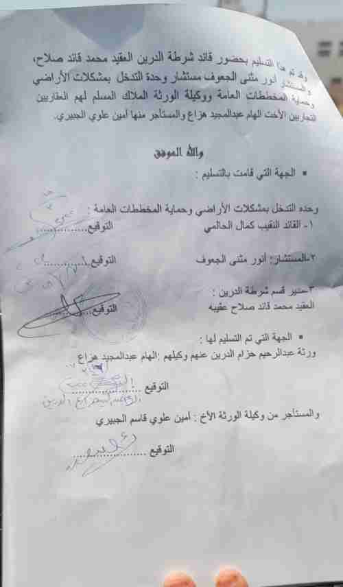 تتقدم الهام عبدالمجيد الدرين وكيلة ورثة عبدالرحيم حزام الدرين باسمى آيات الشكر والتقدير والعرفان للقائد الجنوبي البطل كمال الحالمي قائد وحدة التدخل بمشكلات الأراضي وحماية المخططات العامة محافظة عدن لقيامه هذا اليوم الثلاثاء 15مارس 2022 بتنفيذ توجيهات رئيس نيابة عدن ووكيل نيابة المنصوره و مدير شرطة عدن واعادة تسليمها الورشتين رقمي 43/44 منطقة الدرين المنصوره المملوكه لموكلينها . وبهذا التسليم أنهى القائد كمال الحالمي بتنفيذ الأوامر القضائية معاناة سنوات طويله تكبدت خلالها أسرة الدرين العدنية شتى صنوف الظلم والاضطهاد والحرمان من املاكها متمنيه للقائد الحالمي التوفيق والنجاح في مهامه العمليه والشكر موصول للمستشار القانوني للوحده أنور الجعوف وجميع أفراد وحدة حماية الأراضي و التعزيز العسكري للوحده من قبل القائد كامل الخالدي وافراده وكذا قيادة قسم شرطة الدرين وجميع ضباطها وافرادها .