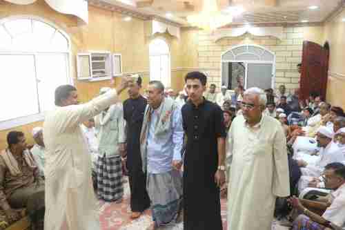 وعلى مدى يومين متتاليين كانت الافراح تتواصل بهذه المناسبة التي جمعتهما في بيت واحد بيت الاخ العزيز رجل البر والاحسان والشخصية الاجتماعية / محمد محسن بن محمد الكثيري بمزيج من العادات التراثية والفلكلور الشعبي الاصيل ،حيث اقيمت مساء الاربعاء جلسة السمر بمشاركة فرقة فنية عزفت بأجمل الالحان الغنائية من كلمات شعار حضرموت ، فيما اقيم ظهر يوم امس الخميس غسة العرسان كما يطلق عليها بمدينة سيئون بمصاحبة فرقة آل باصالح للزربادي والموروث الشعبي تخللها وضع الحناء على رجلي العرسان إذانا بزواجهما بمشاركة العديد من الشخصيات الدينية والاجتماعية والاهل والاقارب والاصدقاء يتقدمهم عضو مجلس الشورى شيخ مشايخ آل كثير بوادي وصحراء حضرموت رئيس مرجعية قبائل وادي وصحراء حضرموت الاستاذ الفاضل الشيخ / عبدالله صالح الكثيري .
