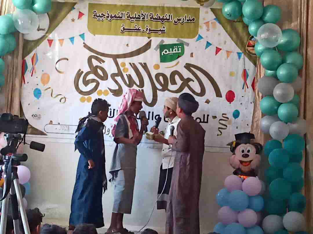 *بحضور السلطة المحلية شبوة . مدارس النهضة الأهلية بعتق تقيم الحفل التكريمي للمعلمين والطلاب المتفوقين*