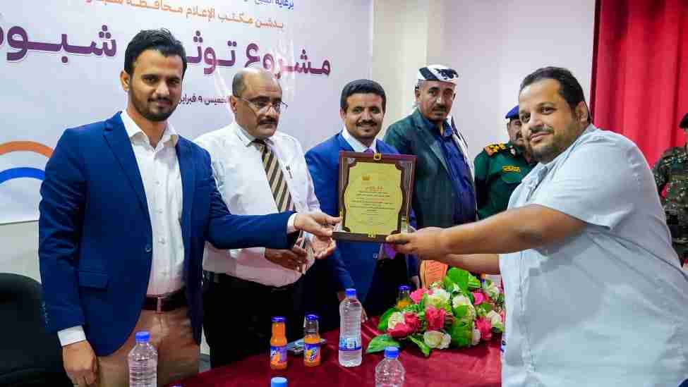 مكتب إعلام شبوة يكرم الشخصية الوطنية محمد السقاف بدرع الشكر