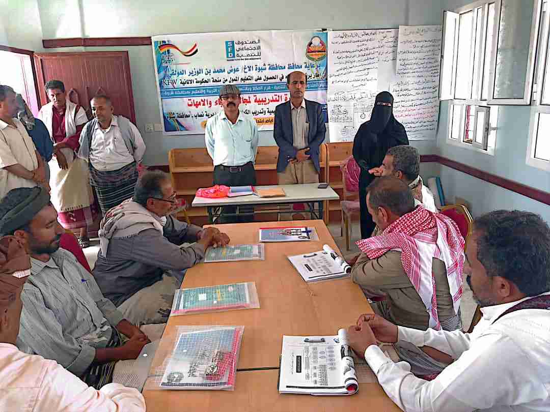 تدشين الدورة التدريبية لمجالس الأباء والأمهات بمديرية نصاب م/ شبوة بدعم من الصندوق الاجتماعي للتنمية فرع المكلا*