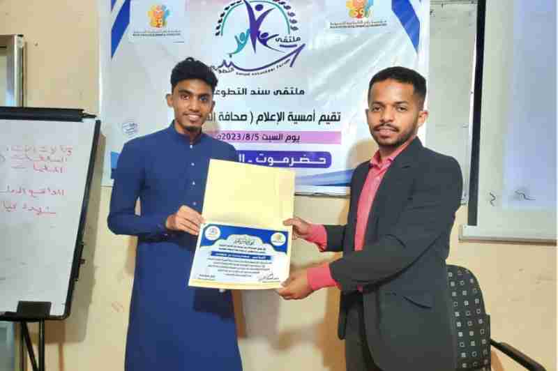 أقام ملتقى سند التطوعي مساء يوم السبت الموافق 5/8/2023 أمسية إعلامية بعنوان "صحافة الموبايل" و التي تأتي بالشراكة مع دائرة المرأة والطفل بمؤتمر حضرموت الجامع بالشحر و مؤسسة رؤى الشبابية للتنمية، للمدرب عمار بن جوهر، و استهدفت الأمسية الإعلاميين و هواة الإعلام و التصوير بمديرية الشحر.