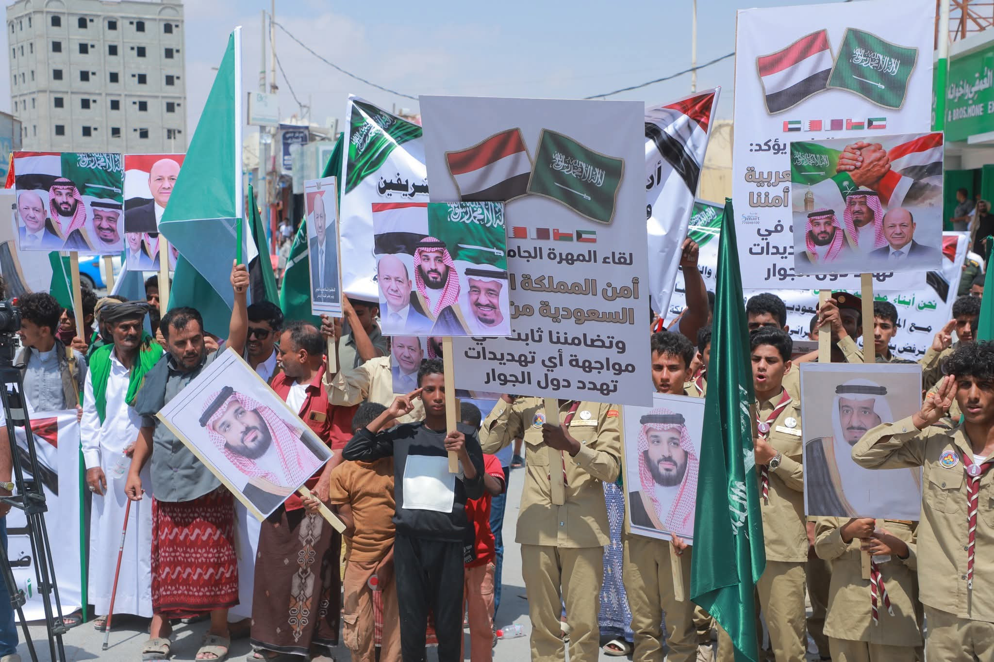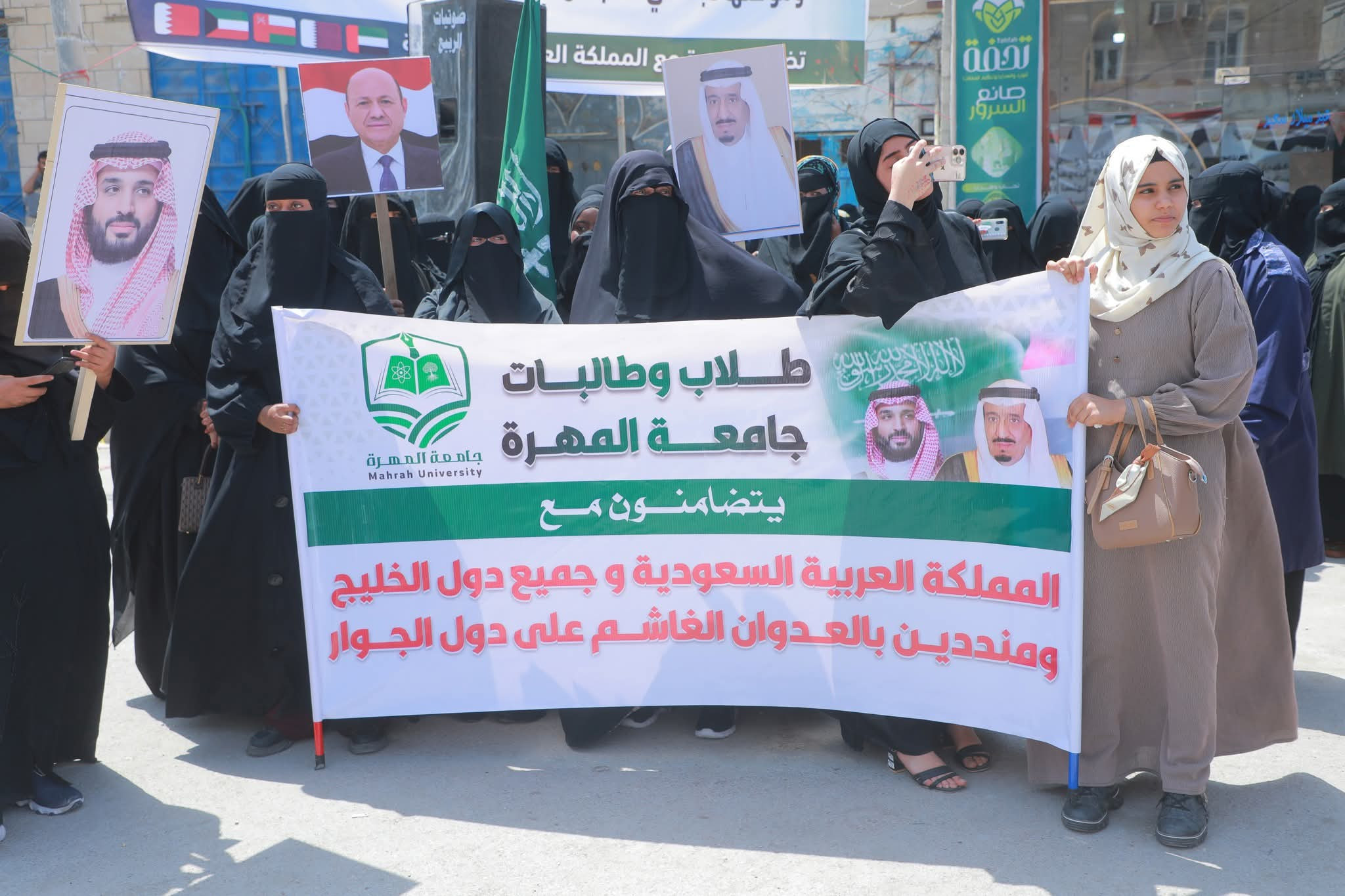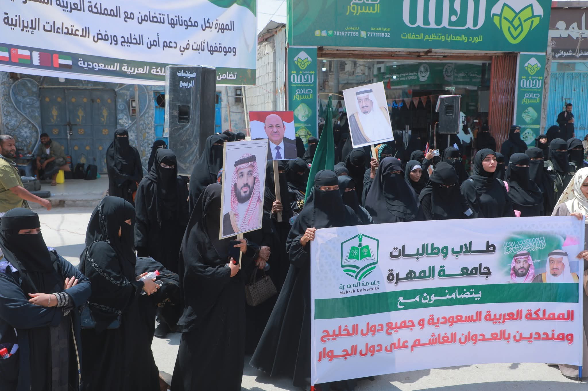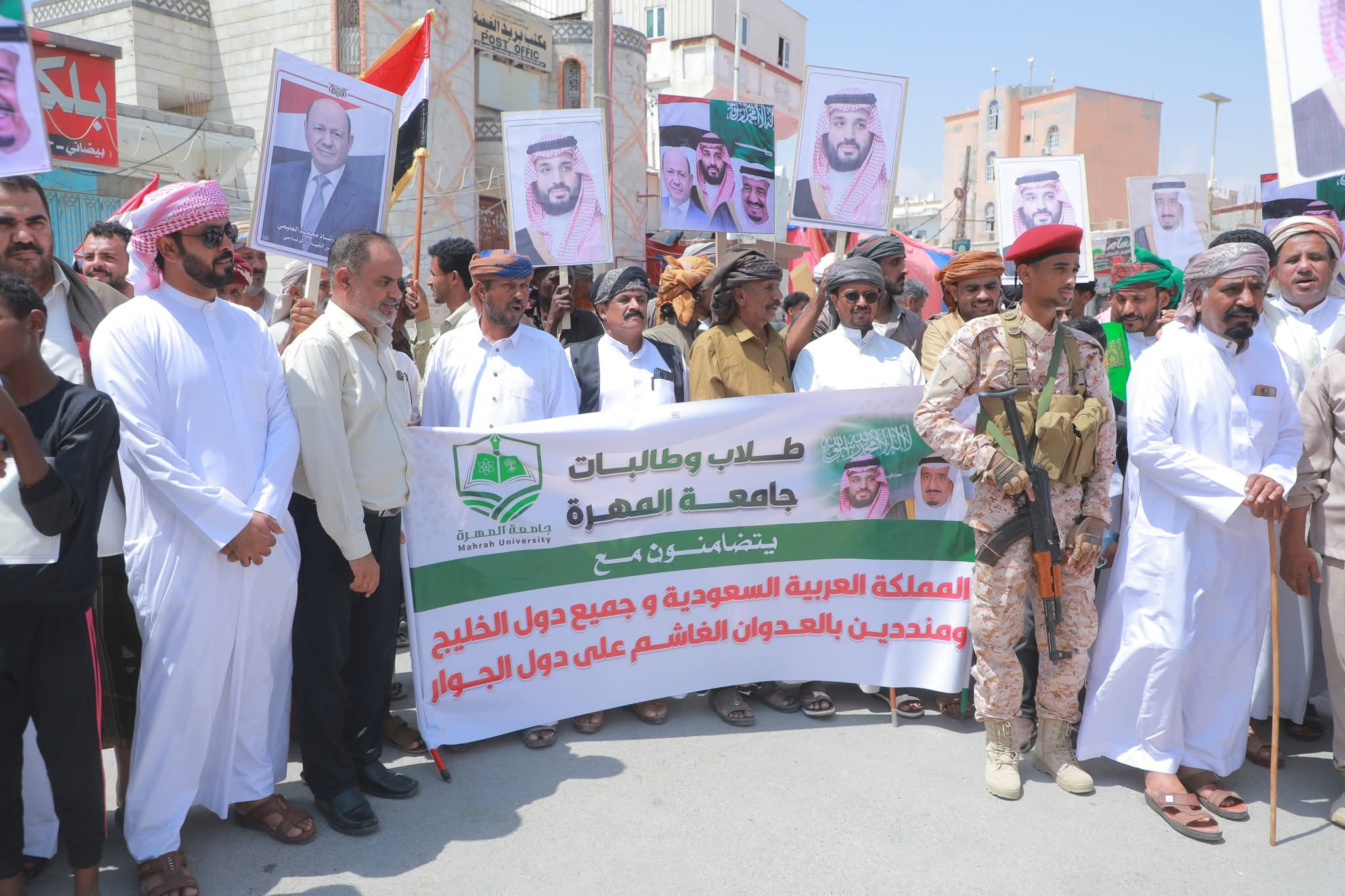 تظاهرة حاشدة في المهرة تؤكد التضامن مع السعودية وترفض الاعتداءات الإيرانية