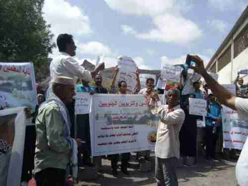 وقفة إحتجاجية أمام مكتب وزير التربية والتعليم بالعاصمة عدن شاهد الصور