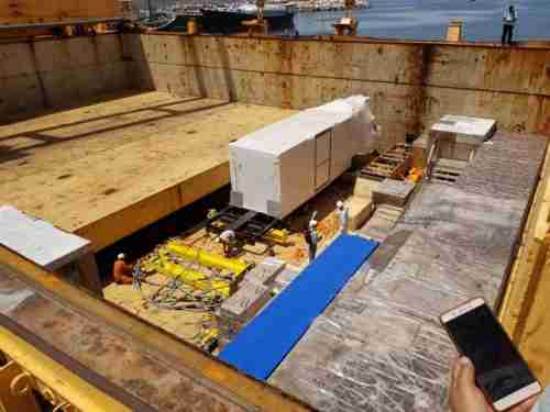 ومن المقرر أن تستكمل عملية التفريغ اليوم ، ليتم نقلها بعد ذلك عبر أسطول قطاع النقل البري، بشركة رويال كلوك، إحدى شركات مجموعة كردوس القابضة، والتي عملت على نقل كافة أجزاء التوربينات السابقة، التابعة للمحطة، في عملية وصفت بالجبارة والدقيقة.