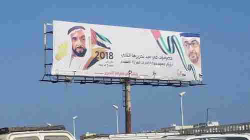 أزاحت حملة "ماقصرتوا عيال زايد" اليوم الثلاثاء الموافق 24 إبريل الستار عن لوحة كبيرة في قلب مدينة المكلا عاصمة محافظة حضرموت، تضمنت عبارات شكر وعرفان لأولاد زايد وأيضاً صور لقادة دولة الإمارات العربية المتحدة الشقيقة.