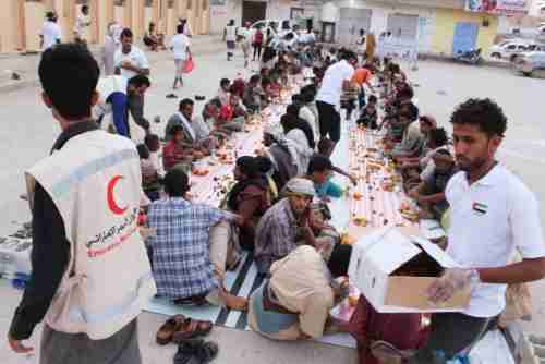 مصور"الهلال الأحمر الإماراتي" يقيم إفطاراً جماعياً بمدينة عتق عاصمة محافظة شبوة.