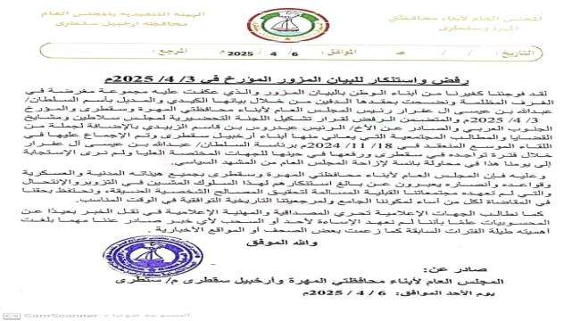 جهات معادية تنشر بيان مزور باسم سلطان ال عفرار لقد فوجئنا كغيرنا من أبناء الوطن بالبيان المزور والذي عكفت عليه مجموعة مغرضة في الغرف المظلمة ونضحت...
