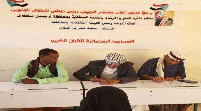 انتقالي سقطرى ينظم مسابقة رمضانية لحفظ القرآن الكريم بالمحافظة نظّمت إدارة الفكر والإرشاد بالهيئة التنفيذية للقيادة المحلية للمجلس الانتقالي الجنوبي في محافظة سقطر...