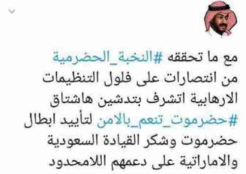 حضرموت_تنعم_بالامن هشتاق جديد اطلقه الحضارم في مواقع التواصل.شاهد دشن ناشطين من ابناء حضرموت حملة شكر للامارات العربية المتحدة والتحالف العربي بقيادة المملكة العربية...
