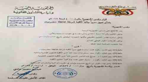 هادي يصدر قراراً بتعيين مدير ونواب لكلية الشرطة بمحافظة حضرموت - اسماء أصدر الرئيس عبدربه منصور هادي رئيس الجمهورية القائد الاعلى للقوات المسلحة القرار الجمهوري رقم 61 لسن...
